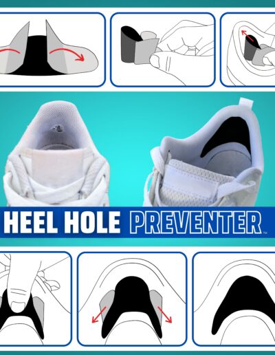 Trainer Armour’s Heel Hole Preventer is a reinforced, self-adhesive patch designed to protect the heel area of your shoes.